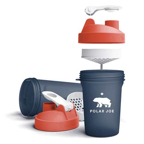 Designed in Polar Joe's Classic Cold Brew colors, the Po' Jo' Quick Shaker is easy to clean  — pop it on the top shelf of the dishwasher  — durable, and a convenient way to pre-mix or take Polar Joe on your next big adventure.